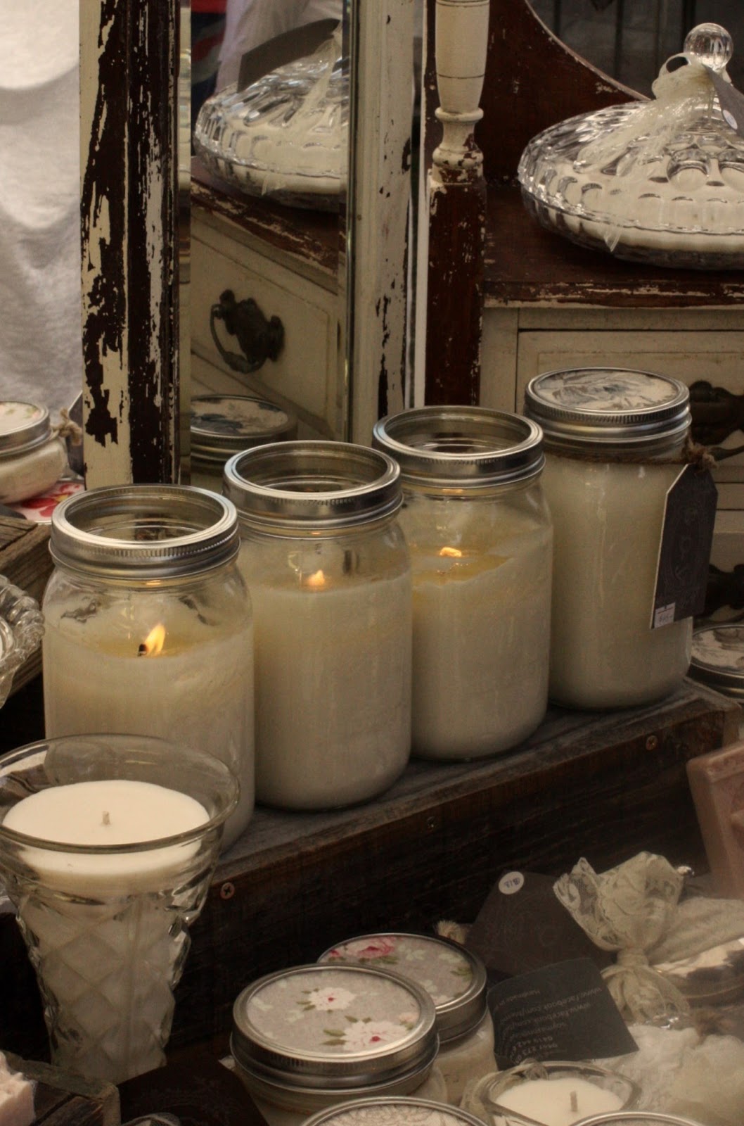 And just let me gush for one more minute here, because I have to say something about the candles in the vintage crystal vases, tea cups and just about everything else gorgeous. I love, love, love them and they would not only make great gifts, but would look amazing as centrepieces for a really special occasion.